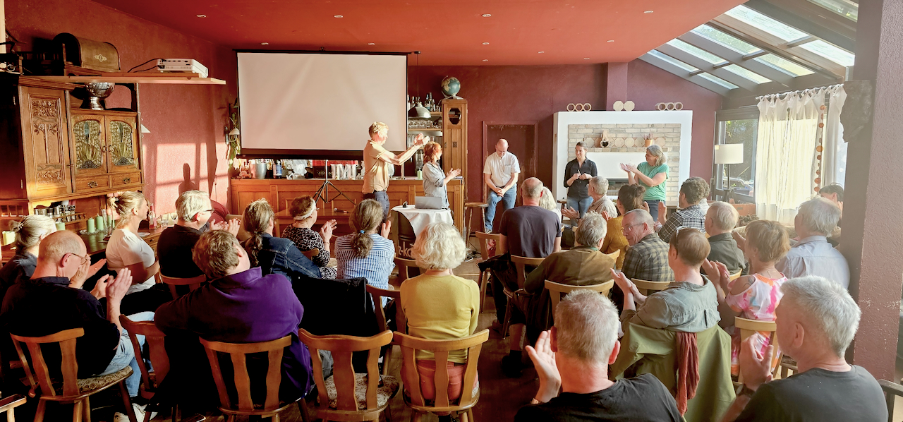 Das Interesse an Information und Austausch war jedenfalls groß, denn über 50 Personen folgten der Einladung des Heimatvereins Ringenwalde, der Bürgerstiftung und denkhausbremen. Um sich über Freiflächen-Photovoltaik – so heißen die Solarmodule auf dem Acker eigentlich ganz genau – zu informieren und ins Gespräch zu kommen.